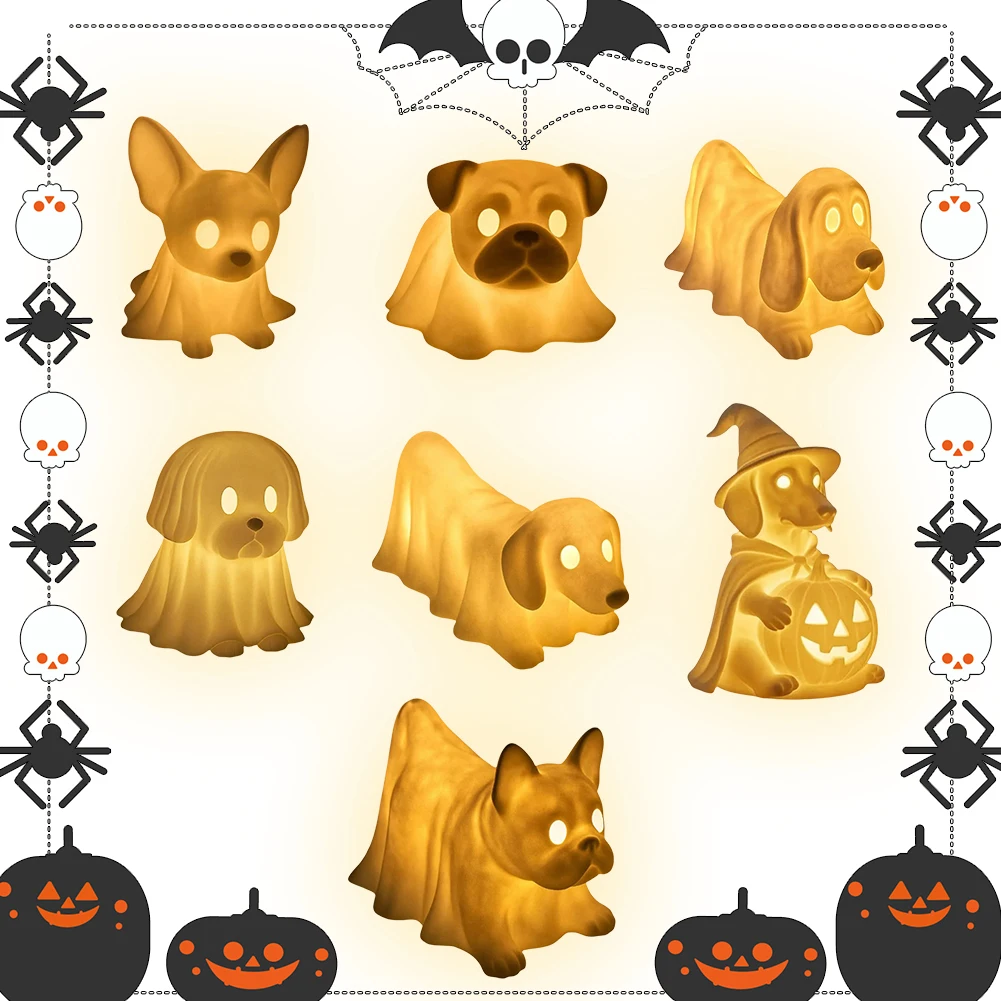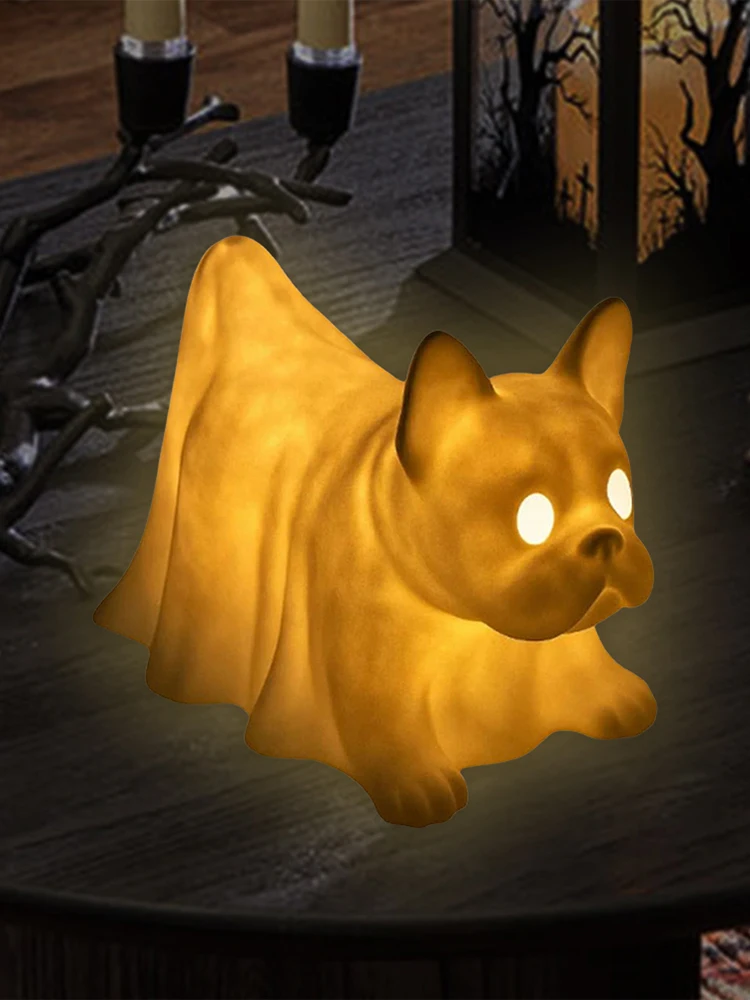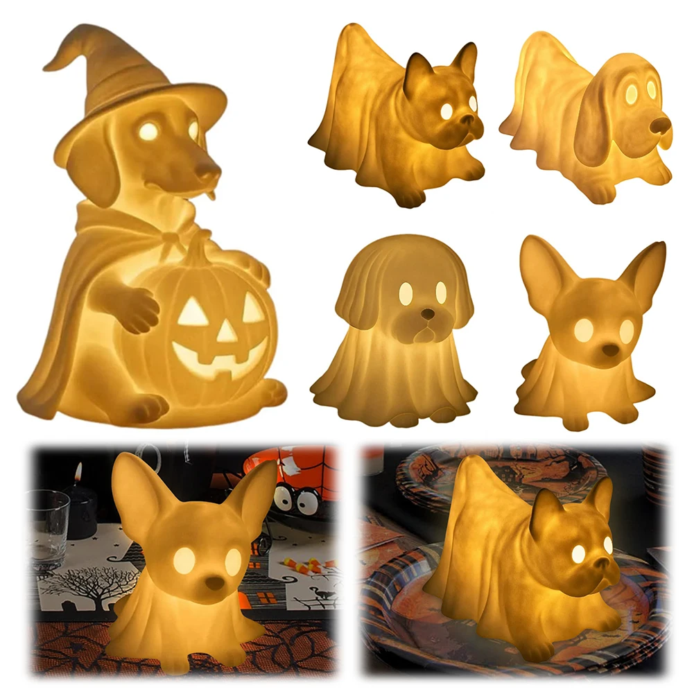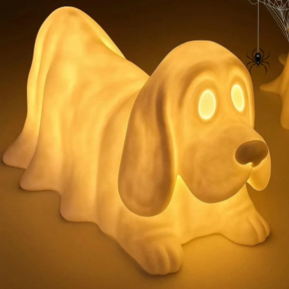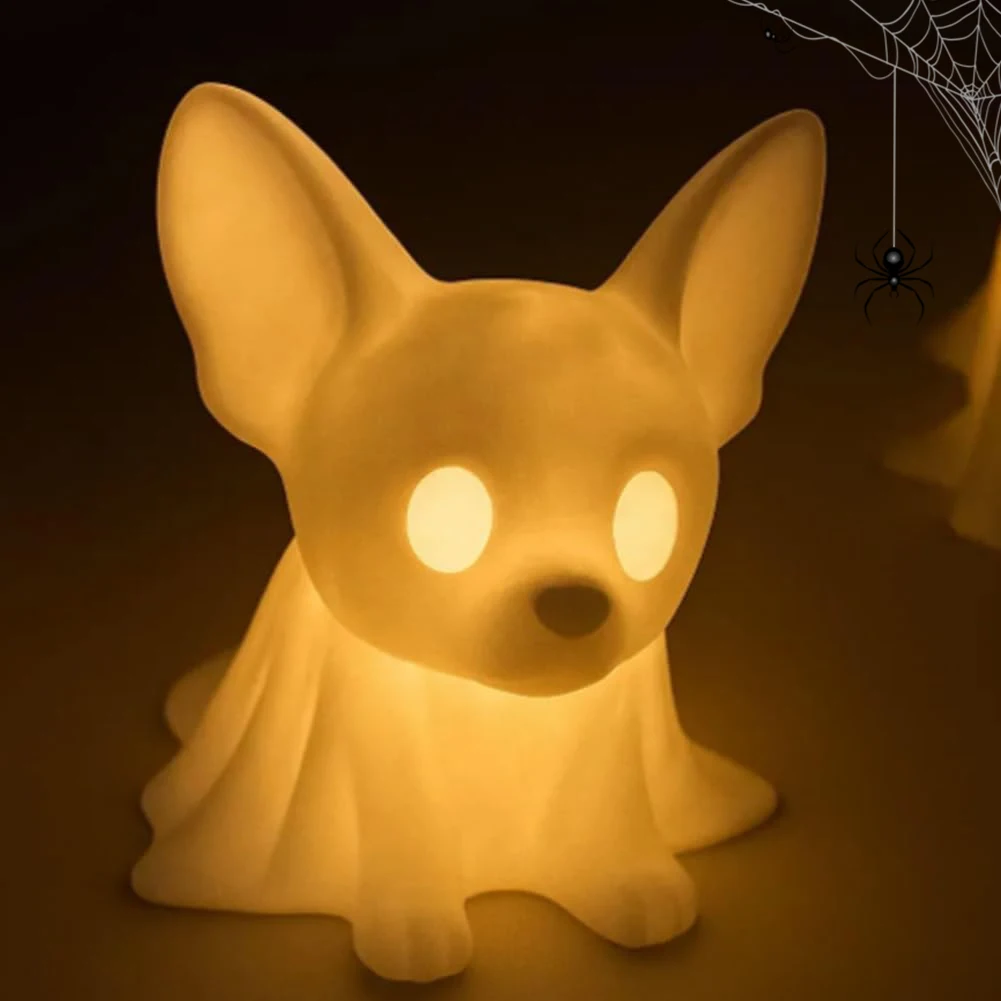 Halloween Decoration Ghost Puppy Night Light with LED Glowing Ghost Dogs for Office Desktop Spooky Decor